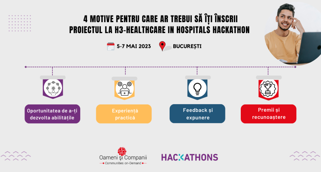 Dacă nu ești sigur că vrei sa te înscrii la H3-Healthcare in Hospitals Hackathon ce se va desfășura în perioada 5-7 mai 2023, în București & online, iată câteva dintre cele mai importante motive.
